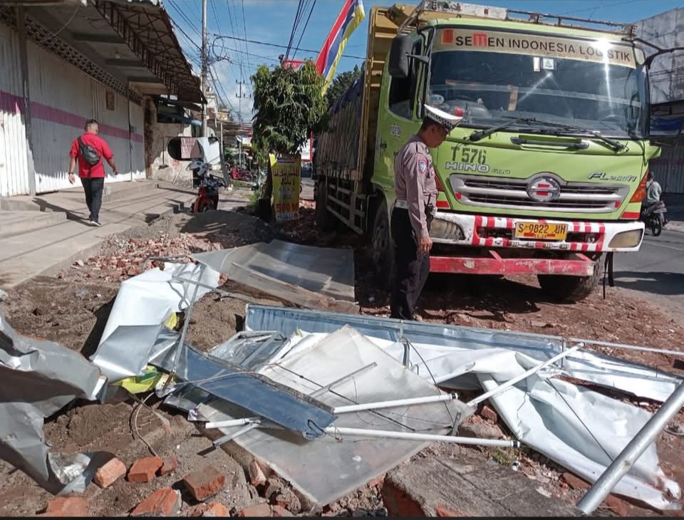 Pratamanews.Com – Banyuwangi – Sebuah insiden kecelakaan tunggal terjadi di Jalan Raya Yos Sudarso, Desa Jajag, Kecamatan Gambiran, Banyuwangi, pada Selasa (22/4/2025) pagi sekitar pukul 07.45 WIB. Sebuah truk Hino tronton bermuatan semen dengan nomor polisi S-9822-UH mengalami rem blong dan menabrak plang neon box milik Madrasah Ibtidaiyah Negeri (MIN) 3 Banyuwangi.