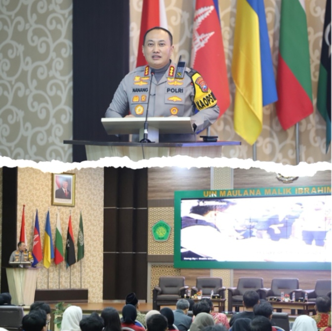Kali ini Kapolresta Malang Kota, Kombes Pol Nanang Haryono SH, SIK, MSi memberikan penyuluhan kepada mahasiswa Universitas Islam Negeri (UIN) Maulana Malik Ibrahim Malang terkait kesadaran publik dalam mencegah kekerasan terhadap perempuan, anak, dan kelompok rentan.