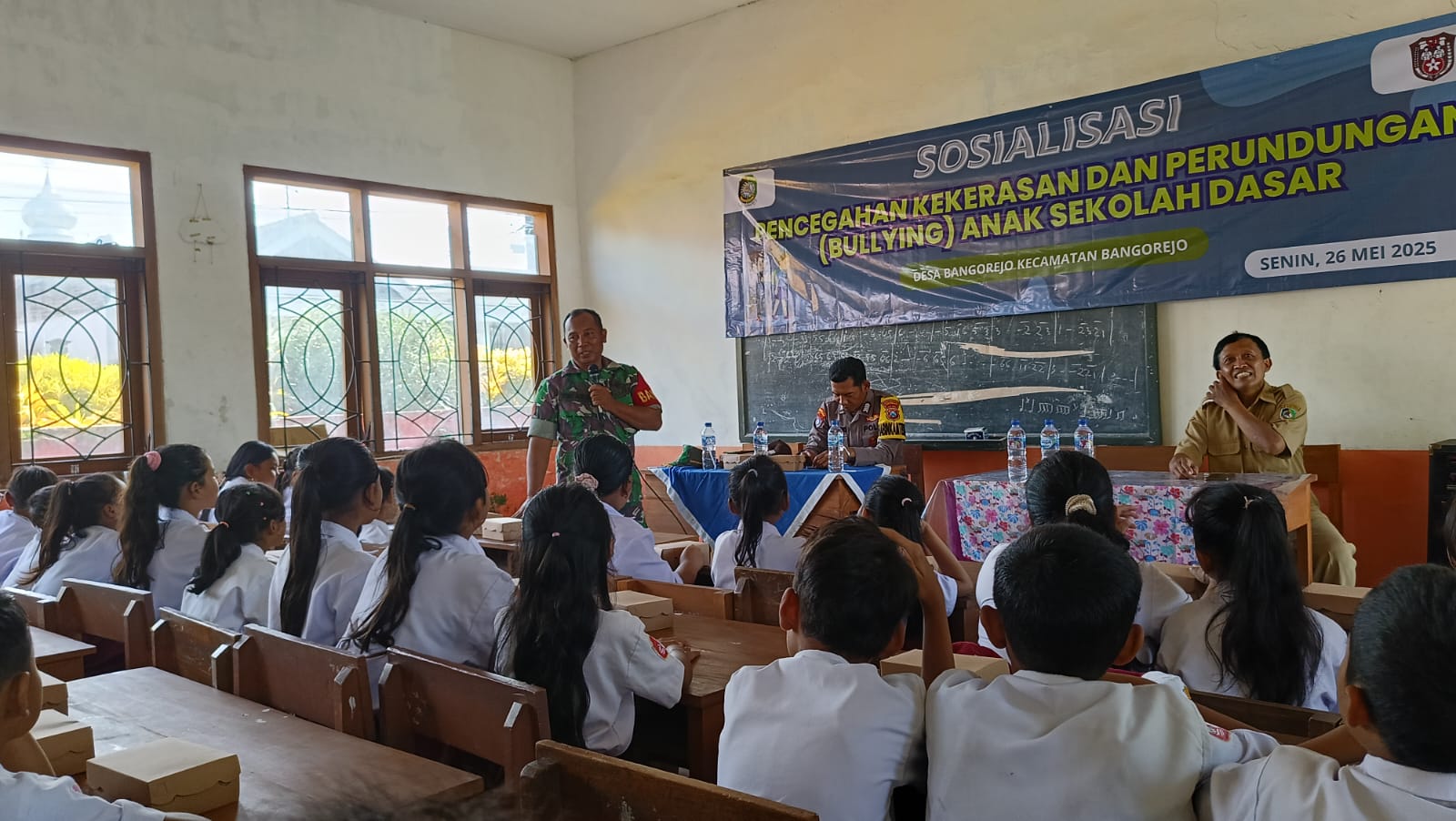 BANYUWANGI || PratamaNews.com || Bangorejo – Dalam upaya menciptakan lingkungan sekolah yang aman dan mendukung tumbuh kembang anak, Babinsa Desa Bangorejo, Kopka Yono Adi Susanto, turut serta dalam kegiatan sosialisasi pencegahan kekerasan dan perundungan (bullying) terhadap anak usia sekolah dasar. Kegiatan ini berlangsung di SDN 3 Bangorejo pada Senin 26 mei 2025, dimulai pukul 08.00 WIB hingga selesai.