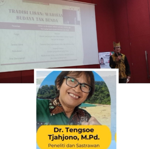 Dr. Tengsoe Tjahjono, M.Pd., dosen sekaligus pegiat literasi, hadir sebagai pemateri dengan membawakan topik “Kontekstualisasi Tradisi Lisan dan Pengembangan Kreativitas dalam Pembelajaran Sastra.” Dalam paparannya, ia mendorong penggunaan tradisi lisan sebagai bahan ajar yang inspiratif dan kontekstual di sekolah.