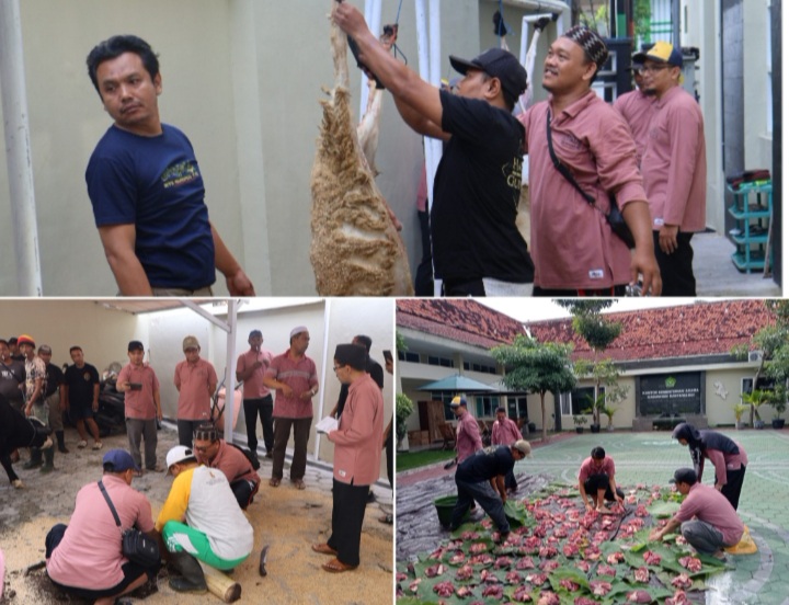 BANYUWANGI || PratamaNews.com || Kantor Kementerian Agama (Kemenag) Kabupaten Banyuwangi menggelar kegiatan penyembelihan hewan qurban dalam suasana hangat dan khidmat pada Senin (10/6/25), bertepatan dengan momen Hari Raya Idul Adha 1446 H. Sebanyak enam ekor sapi dan enam ekor kambing disembelih dalam acara tersebut. Daging qurban dibagikan kepada masyarakat kurang mampu dan warga sekitar kantor.