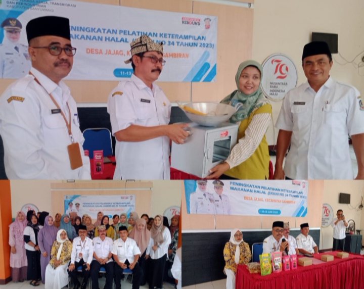 BANYUWANGI || PratamaNews.com || Dinas Tenaga Kerja, Transmigrasi, dan Perindustrian (Disnakertrans dan Perindustrian) Kabupaten Banyuwangi menggelar kegiatan pelatihan peningkatan keterampilan pengolahan makanan halal selama tiga hari. Kegiatan ini diselenggarakan mulai Rabu (11/6/2025) dan bertempat di aula kantor Desa Jajag, Kecamatan Gambiran.