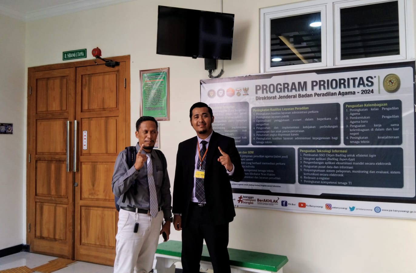 Sidang dimulai pukul 11.30 WIB di Ruang Sidang Utama dan dipimpin langsung oleh Ketua PA Banyuwangi, Ahmad Rifa’i, S.Ag., M.HI., didampingi dua hakim anggota: Drs. Akhmad Khoiron, M.Hum. dan Ambari, M.S.I., serta Panitera Pengganti Yuliadi, S.H., M.H.