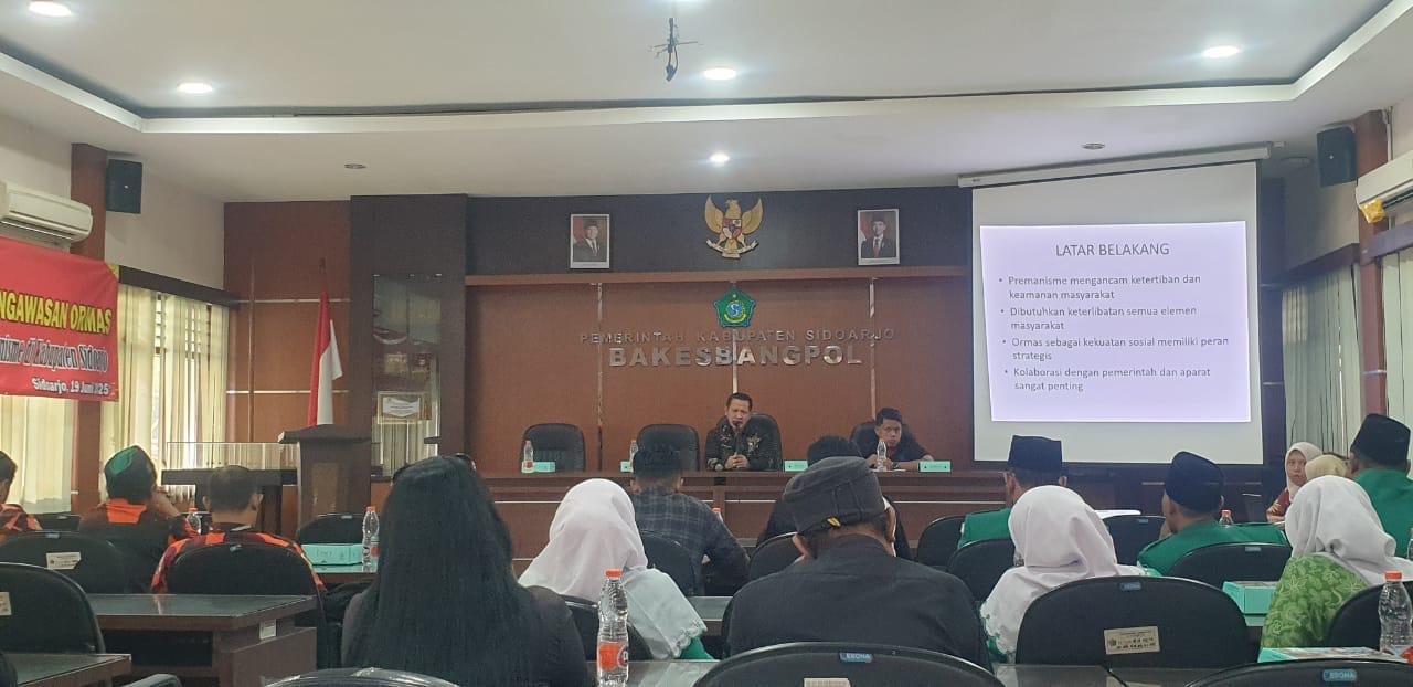 Pratamanews.com – Sidoarjo – 19 Juni 2025 – Badan Kesatuan Bangsa dan Politik (Bakesbangpol) Kabupaten Sidoarjo menggelar kegiatan sosialisasi pengawasan dan monitoring terhadap organisasi kemasyarakatan (ormas) guna menekan aksi premanisme yang masih terjadi di wilayah Kabupaten Sidoarjo.