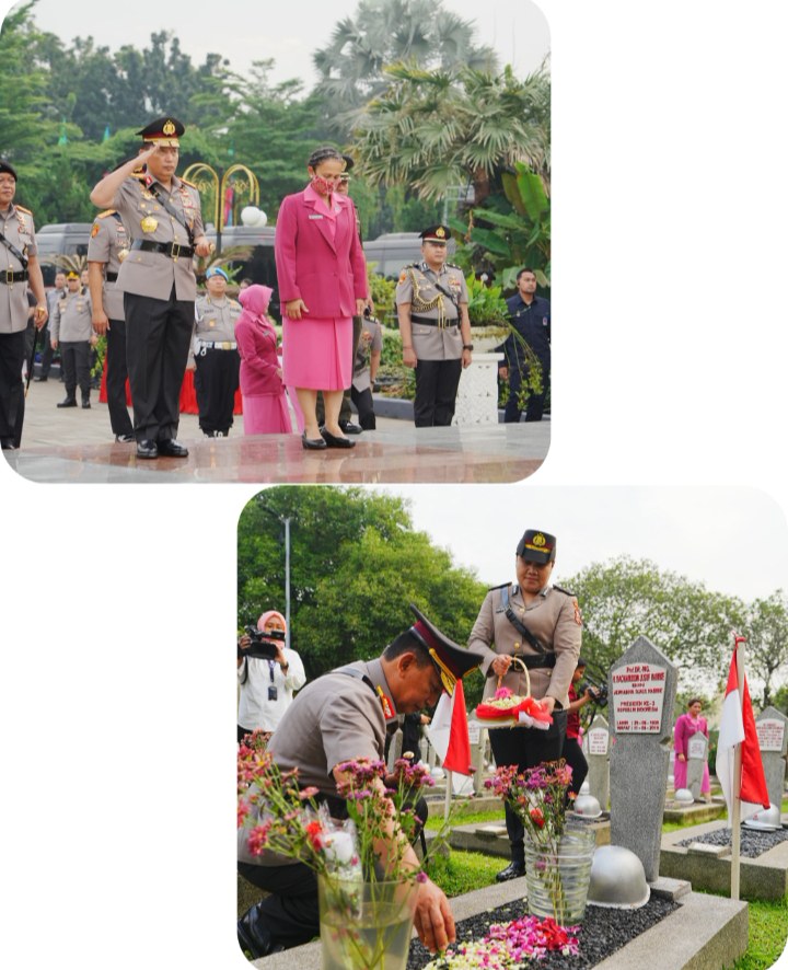 Setelah Upacara selesai, Kapolri beserta jajaran PJU Mabes Polri bergerak untuk menabur bunga di makam para Pahlawan Bangsa Indonesia.
