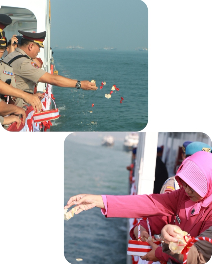 SURABAYA || PratamaNews.com || Rangkaian peringatan Hari Bhayangkara ke -79, Polda Jawa Timur melaksanakan tabur bunga di Dermaga Pelabuhan Mirah, Tanjungperak Surabaya,Senin (23/6).