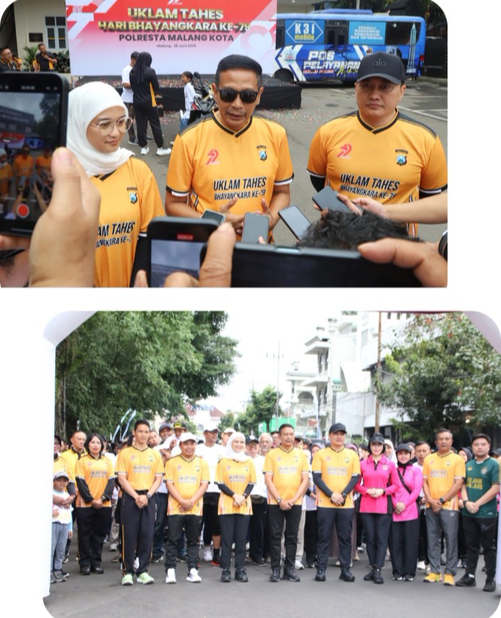 MALANG || PratamaNews.com || Memperingati Hari Bhayangkara ke-79, Polresta Malang Kota Polda Jatim mengadakan kegiatan jalan sehat bertajuk Uklam Tahes.