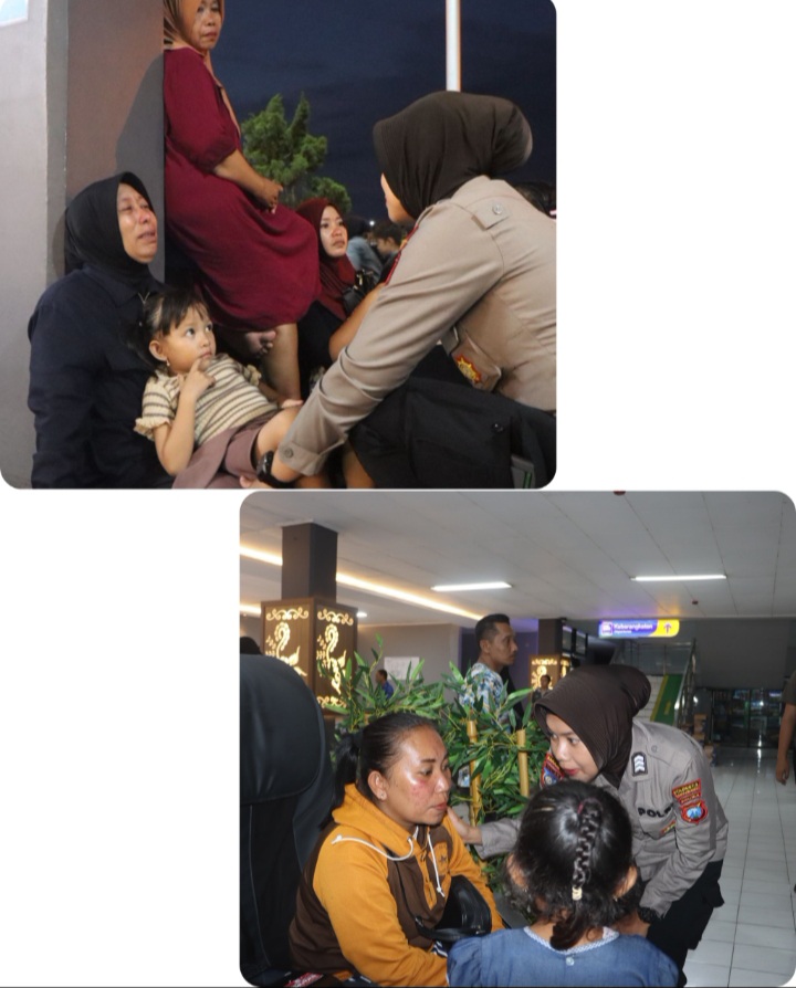 BANYUWANGI || PratamaNews.com || Sejumlah Polwan dari Polresta Banyuwangi turun langsung memberikan pendampingan kepada para korban selamat tragedi tenggelamnya KMP Tunu Pratama Jaya. kamis ( 3/7/2025)