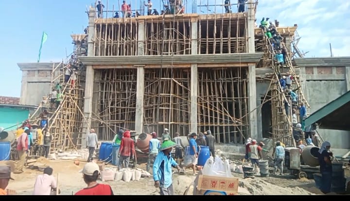 Dengan do’a serta dukungan awak media Beharap Insya Allah masjid dua lantai dengan ukuran bangunan 25 x 25 meter persegi memasuki tahap pengecoran dak lantai ke 3 untuk Kedudukan menara / kubah masjid nya.