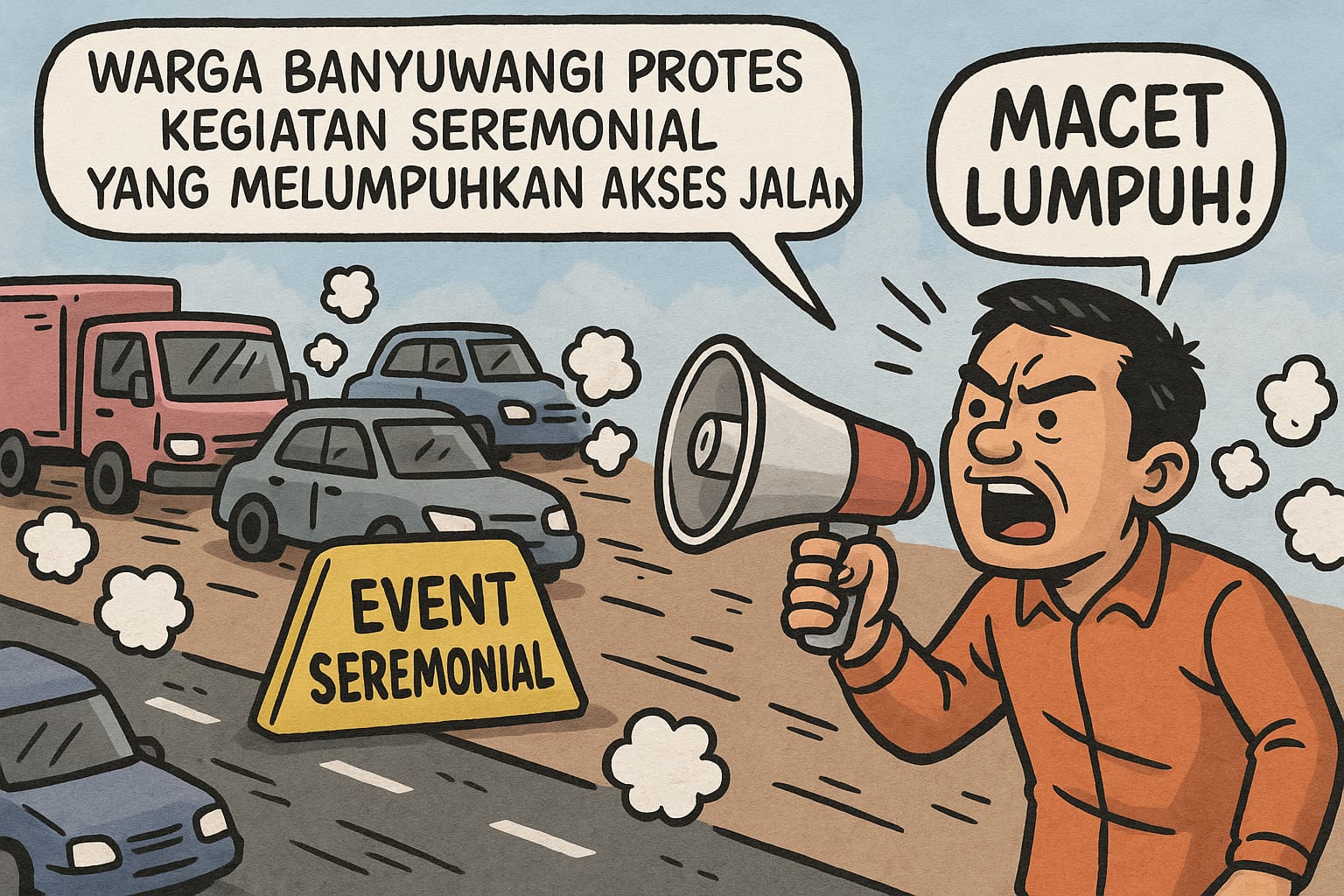 “Penutupan jalur akibat kegiatan ini membuat wilayah Banyuwangi macet total (lumpuh), mengganggu distribusi logistik serta berdampak pada perekonomian Banyuwangi yang kami hitung menurun hingga Rp164 miliar,” demikian bunyi keterangan dalam surat tersebut.