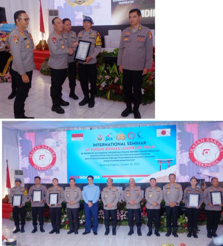Penghargaan tersebut diserahkan oleh Wakapolri, Komjen Pol Prof. Dr. Dedi Prasetyo dalam Seminar Internasional yang digelar di Gedung Aula Ragil Poejono Pusdik Binmas Lemdiklat Polri, Banyubiru, Kabupaten Semarang, Rabu (22/10/2025) pekan lalu.