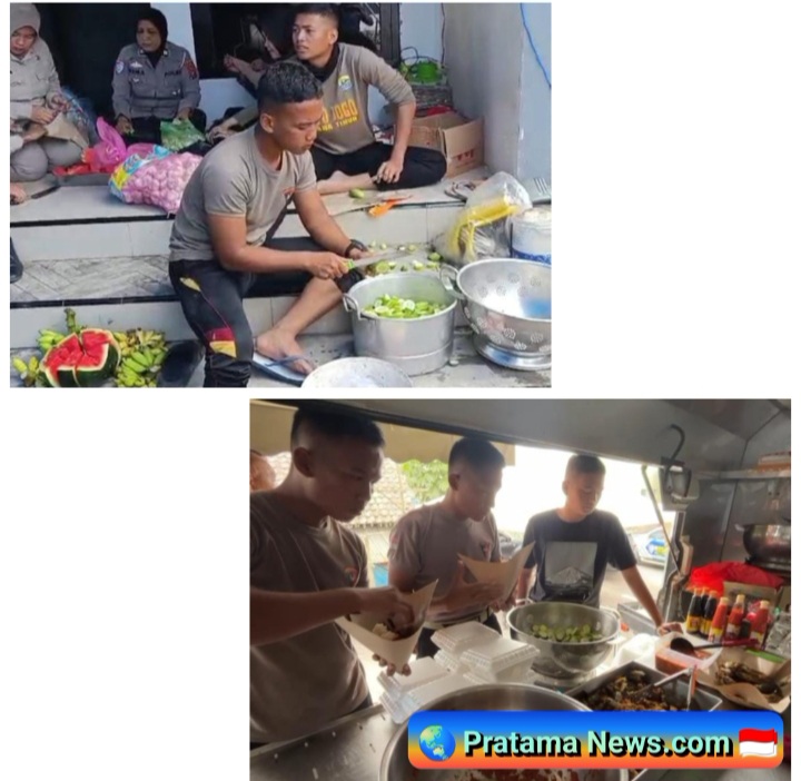 Dengan peralatan lengkap dan tenaga personel yang siaga, petugas menyiapkan makanan untuk para warga, termasuk anak-anak, lansia, dan kelompok rentan lainnya.