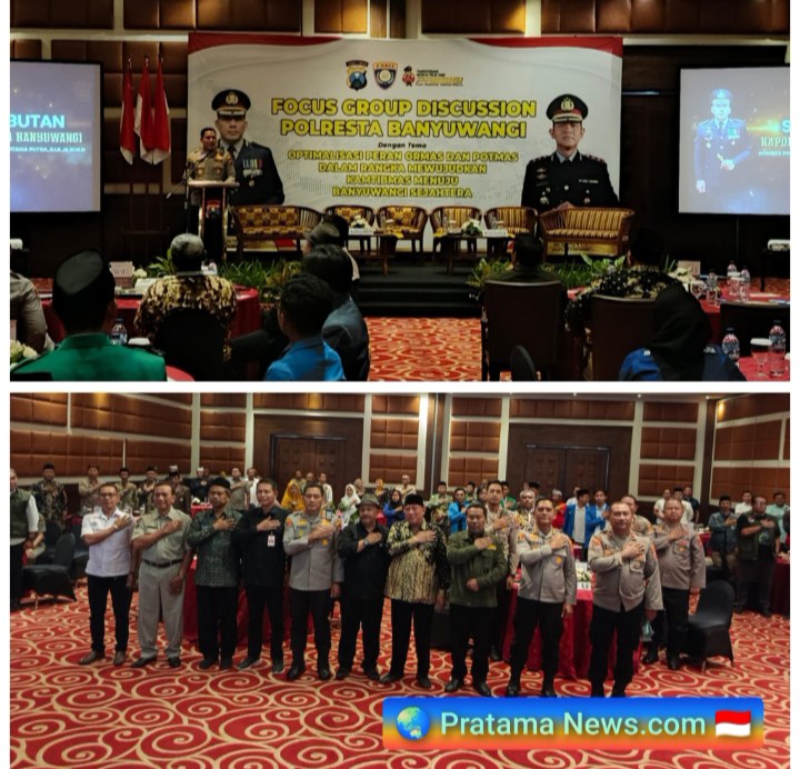 BANYUWANGI || PratamaNews.com || Polresta Banyuwangi menggelar Focus Group Discussion (FGD) bertema “Optimalisasi Peran Ormas dan Potmas dalam Mewujudkan Kamtibmas Menuju Banyuwangi Sejahtera”, Rabu (3/12/2025).
