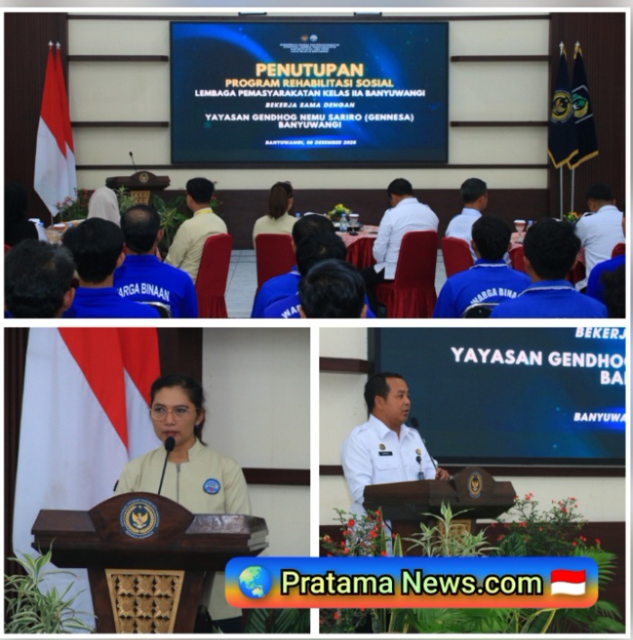BANYUWANGI || PratamaNews.com || Lembaga Pemasyarakatan (Lapas) Kelas IIA Banyuwangi secara resmi menutup program rehabilitasi sosial bagi warga binaan yang terjerat kasus penyalahgunaan narkoba, Senin (8/12). Penutupan program ini menandai kesiapan puluhan warga binaan untuk membawa perubahan positif setelah menjalani serangkaian kegiatan yang intensif.