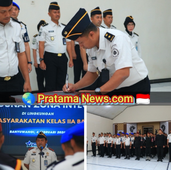 BANYUWANGI || PratamaNews.com || Lembaga Pemasyarakatan (Lapas) Kelas IIA Banyuwangi resmi memulai langkah besar dalam memperkuat tata kelola pemerintahan yang bersih. Bertempat di Aula Sahardjo, jajaran Lapas Banyuwangi menggelar Deklarasi Pembangunan Zona Integritas (ZI) yang ditandai dengan penandatanganan komitmen bersama menuju Wilayah Birokrasi Bersih dan Melayani (WBBM), Rabu (04/02).