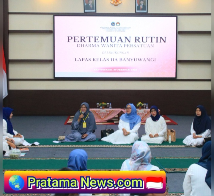 BANYUWANGI || PratamaNews.com || Menyongsong datangnya bulan suci Ramadan 1447 H, Dharma Wanita Persatuan (DWP) Lembaga Pemasyarakatan (Lapas) Kelas IIA Banyuwangi menggelar kegiatan pertemuan rutin yang dirangkai dengan pengajian dan doa bersama. Kegiatan yang berlangsung khidmat ini dipusatkan di Aula Sahardjo Lapas Banyuwangi, Sabtu (7/2).