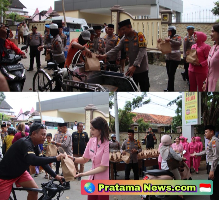 SUMENEP || PratamaNews.com || Polres Sumenep Polda Jatim menggelar kegiatan berbagi takjil gratis di depan Mako Polres Sumenep, Jalan Urip Simoharjo, Selasa (3/3/26).