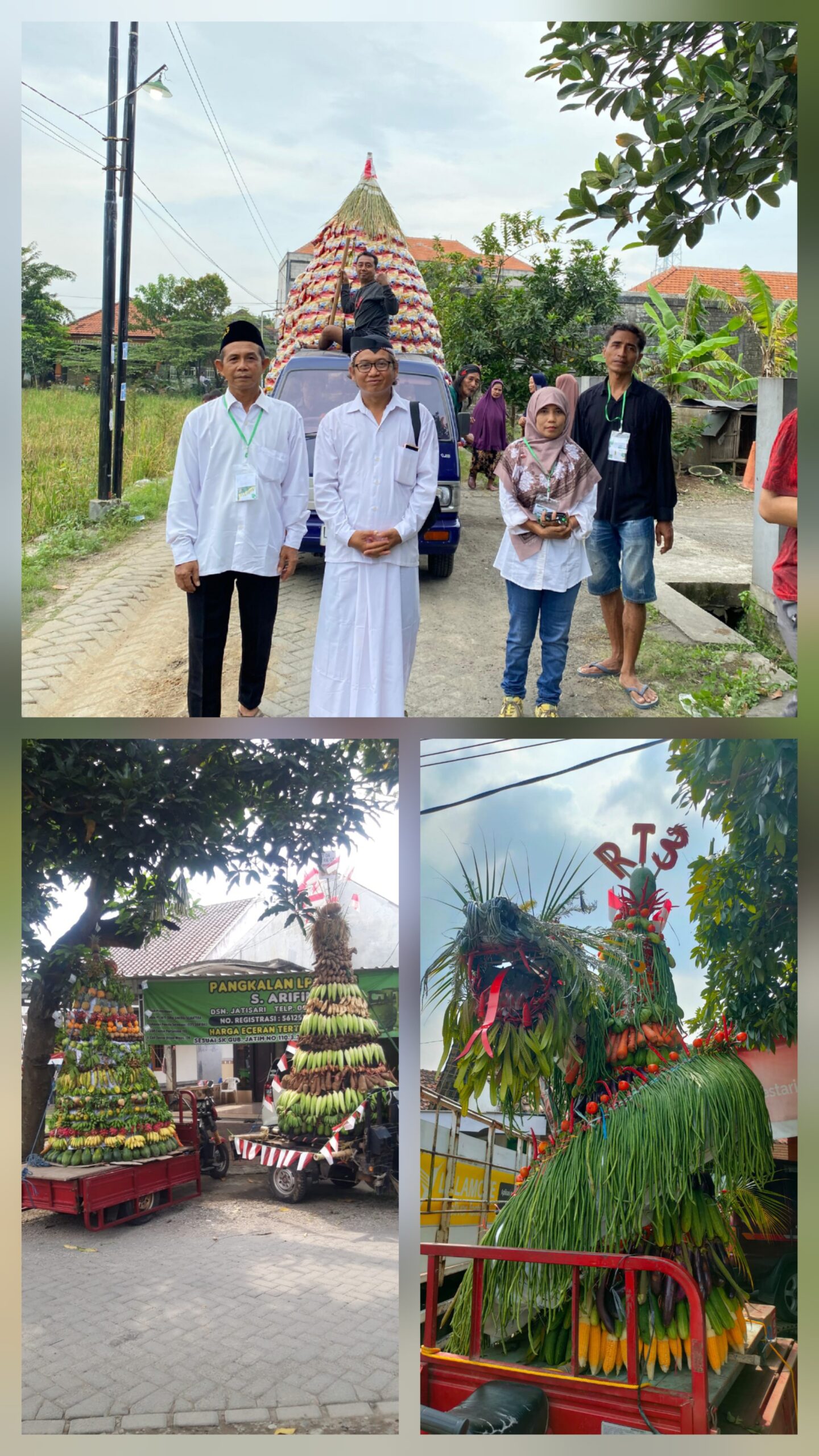 Gunungan yang diarak dalam pawai tersebut terdiri dari berbagai hasil bumi dan produk lokal warga. RT 01 menampilkan gunungan berbahan dasar kerupuk puli hasil UMKM, disusul RT 02 dengan gunungan buah-buahan, RT 03 dengan sayur-mayur, RT 04 dengan hasil bumi berupa polo pendem, serta satu gunungan tambahan berisi aneka snack untuk anak-anak.