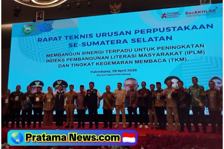 PALEMBANG || PratamaNews.com || Gubernur Sumatera Selatan, Herman Deru secara resmi membuka Rapat Teknis Urusan Perpustakaan se-Sumatera Selatan yang mengusung tema peningkatan Indeks Pembangunan Literasi Masyarakat (IPLM) dan Tingkat Kegemaran Membaca (TKM), dilaksanakan di ballroom hotel the zuri Palembang.