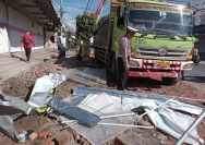 Truk Tronton Muat Semen Alami Rem Blong di Jajag, Tabrak Plang Sekolah